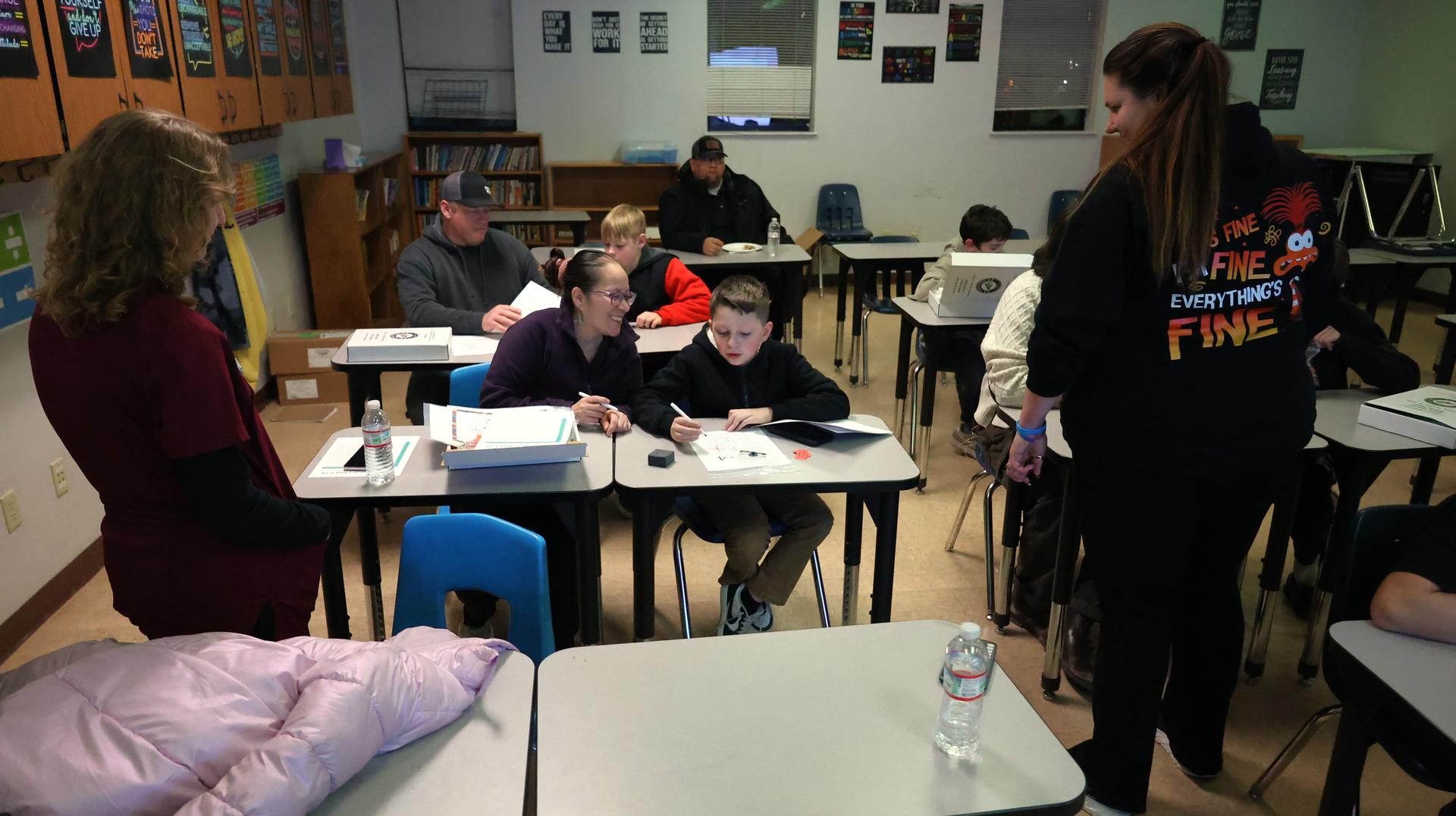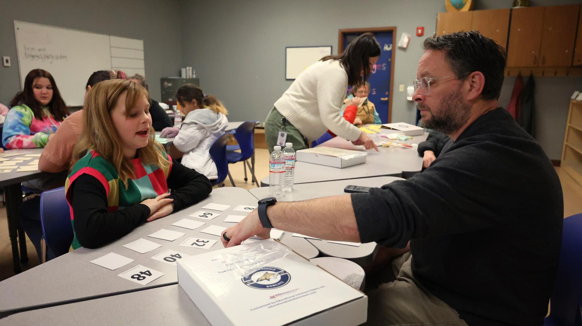 Ponderosa Middle School families enjoyed an evening of pizza, hands-on math fluency games, and family fun during its Ponderosa Family Math Night held this past Tuesday. Jason Bragg of the Educational Solutions Team joined Ponderosa teachers Sherri Kies, Kaitlyn McAllister, Martin Monti, Declan Ritter, Amy Hill, Brent Glidden and Alexander Hernandez, who were present to support families and assist students with interactive math games throughout the evening. |