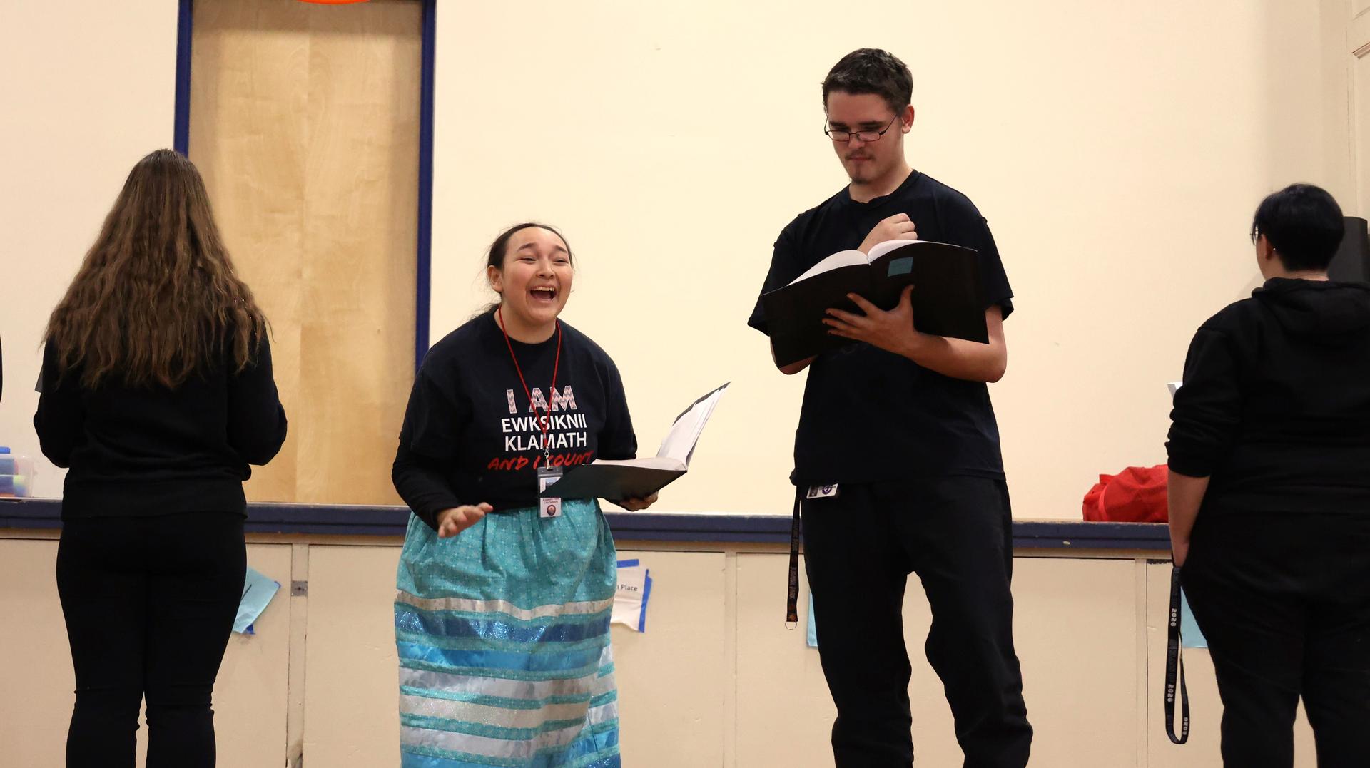 Lancaster said she is especially pleased with how students from Klamath Union and Eagle Ridge New Tech have come together as one theater group. While bringing the two schools together took some initial coordination, she said the students are now connected and supporting one another on stage.