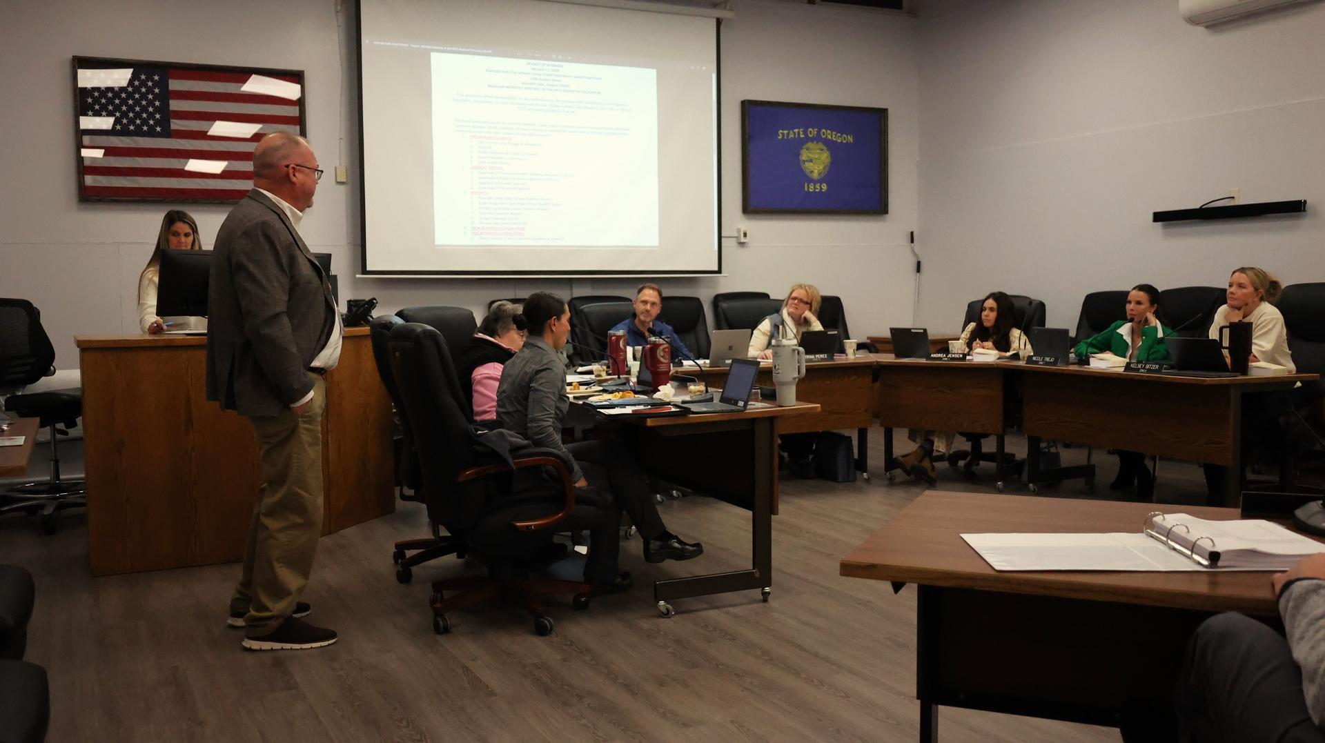 During the meeting, KFCS Superintendent Keith Brown read aloud handwritten letters Ponderosa Middle School students wrote for members of the school board.