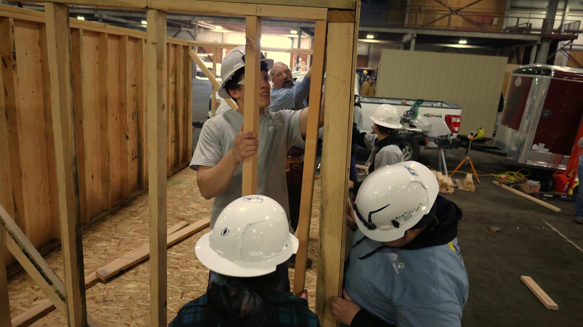 Students from Eagle Ridge New Tech High School gained real-world construction experience while showcasing their skills to the community during the KFalls Build My Future event today, held at the John Hancock Event Center.