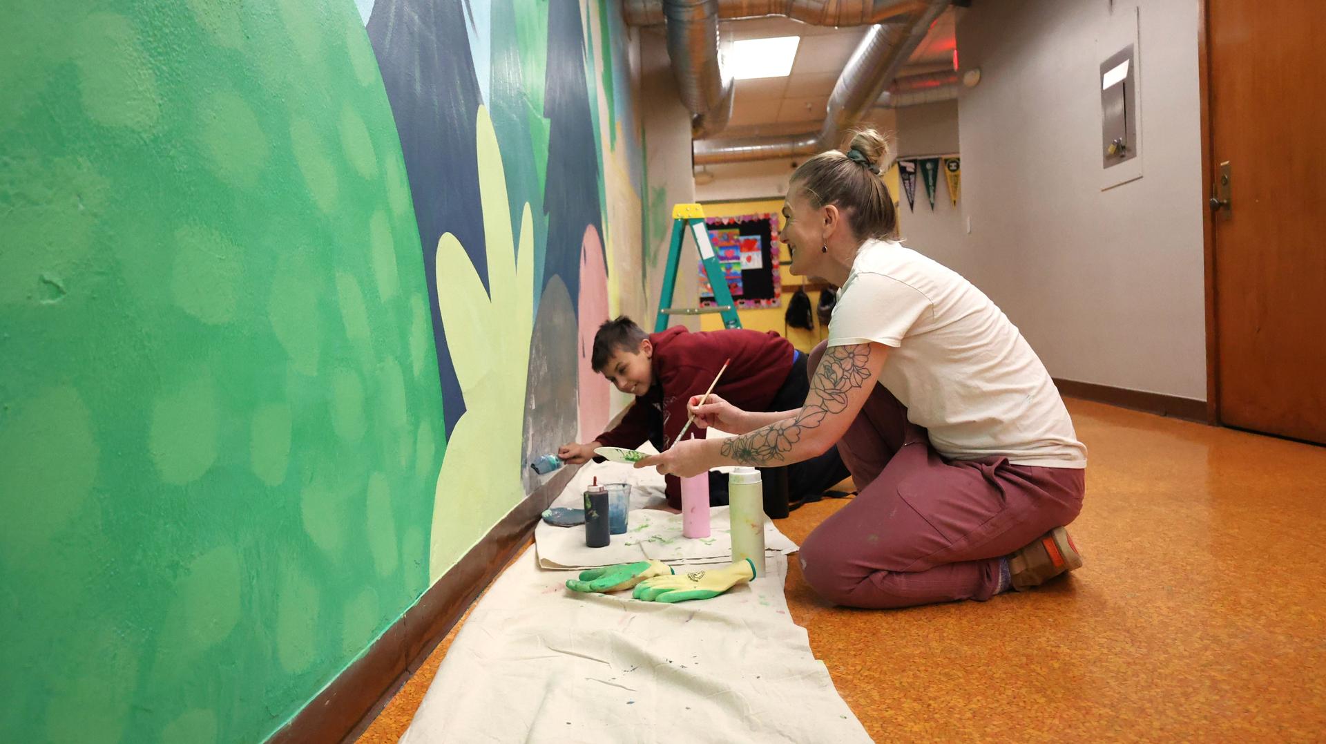 Local artist Lisa Chancellor has begun painting a mural on the library wall at Pelican Elementary School this week, and the big reveal will take place soon as she continues bringing the artwork to life. |