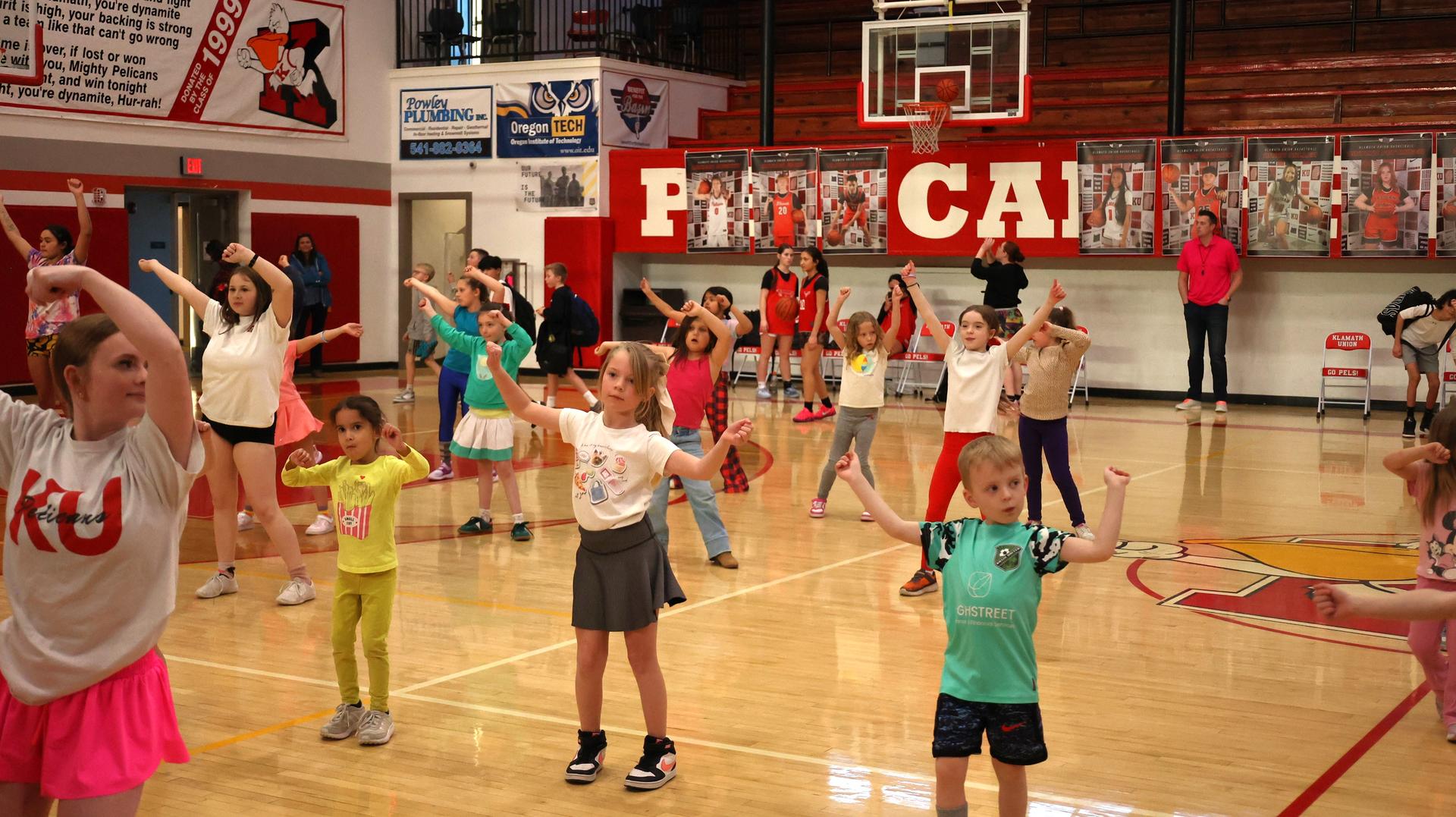 Klamath Union's cheer team put together a week-long cheer camp this week. The camp's attendees, which includes Klamath Falls City Schools elementary school students, will perform at halftime of the Mazama versus Klamath Union boys basketball game tonight at Pel Court. |