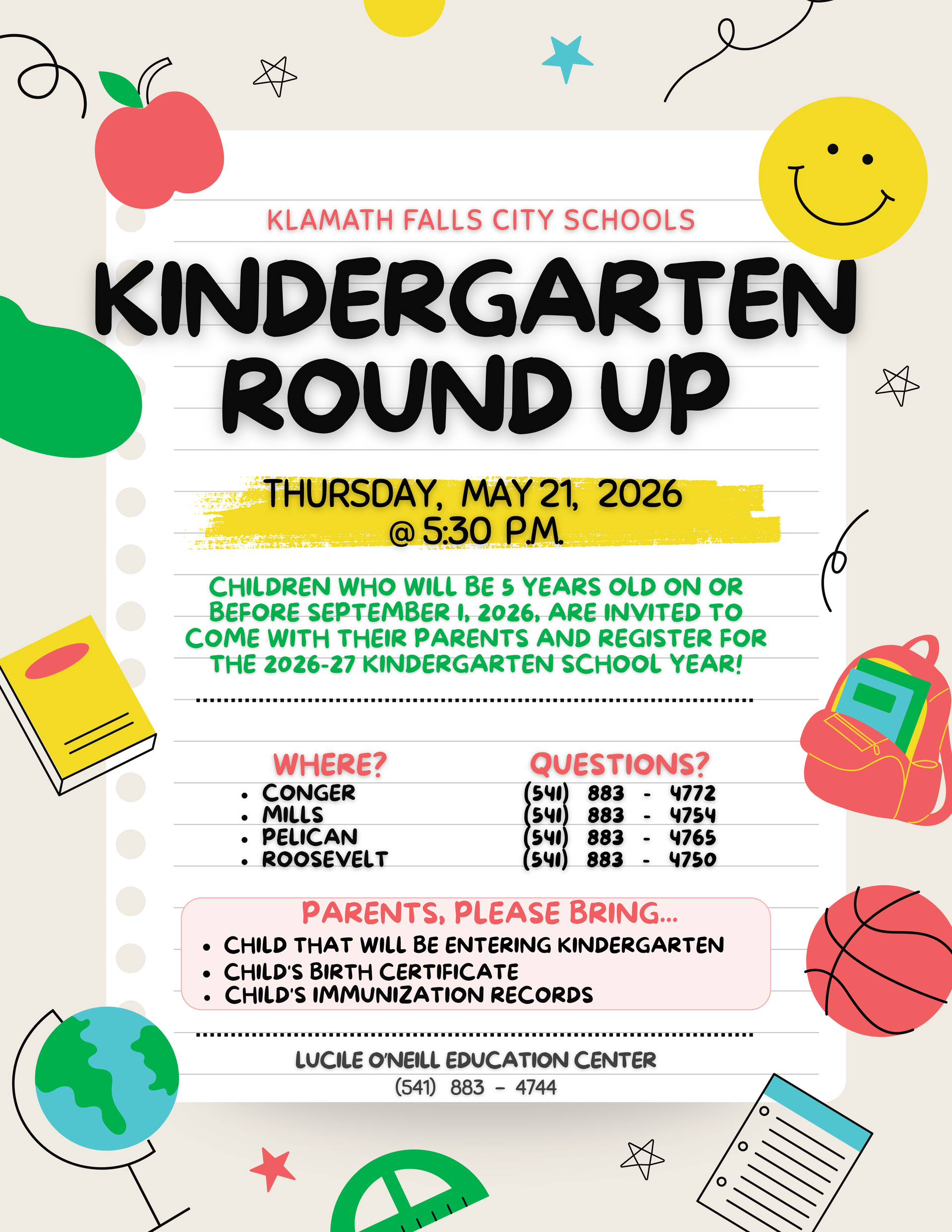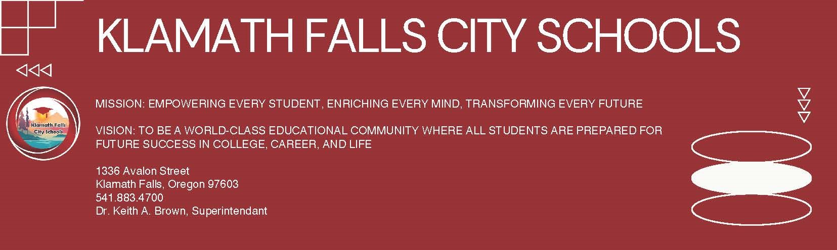 Klamath Falls City Schools does not discriminate on the basis of race, color, religion, gender, sexual orientation, gender identity, national origin, marital status, age, disability, veteran status, or any other protected status in its programs, activities, or employment practices. For more information, please visit our website at Nondiscrimination and Title IX webpage