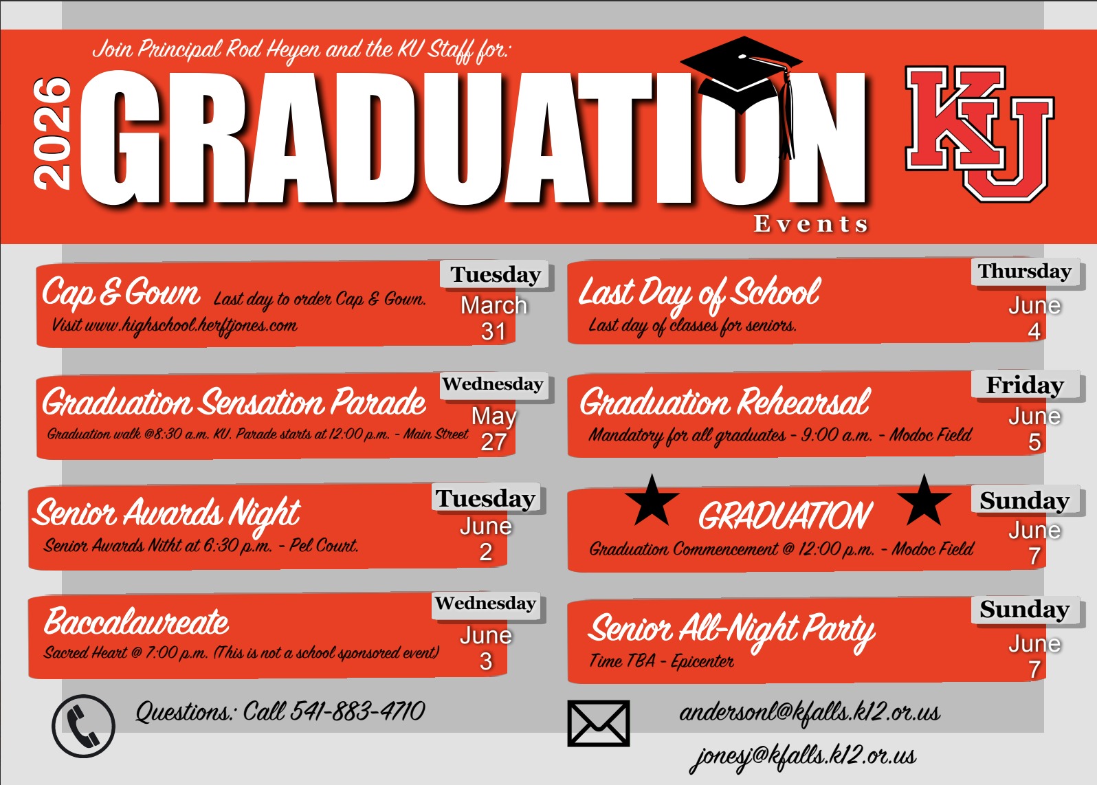 Come explore everything KU has to offer and start finding where you belong. Meet coaches, advisors, and teachers while learning about: • Athletics and sports teams • Clubs and student activities • Career and Technical Education programs • Music, art, and world language electives • Academic pathways and opportunities Walk the halls, ask questions, and get excited about your future at Klamath Union High School. We cannot wait to welcome the Class of 2030 to the Pelican family. Klamath Union High School