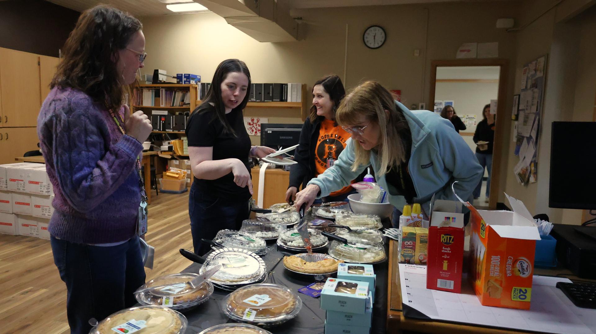 Redford has made it her personal custom to bring the district together for Pi Day. After finishing her shift Thursday evening, she visited Fred Meyer, WinCo Foods, and Walmart to gather an impressive assortment of pies. In total, Redford purchased more than 30 pies with her own money, creating a delicious spread for staff from around the district and the KFCS District Office to enjoy.