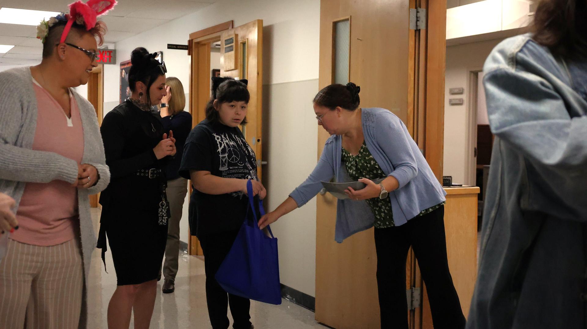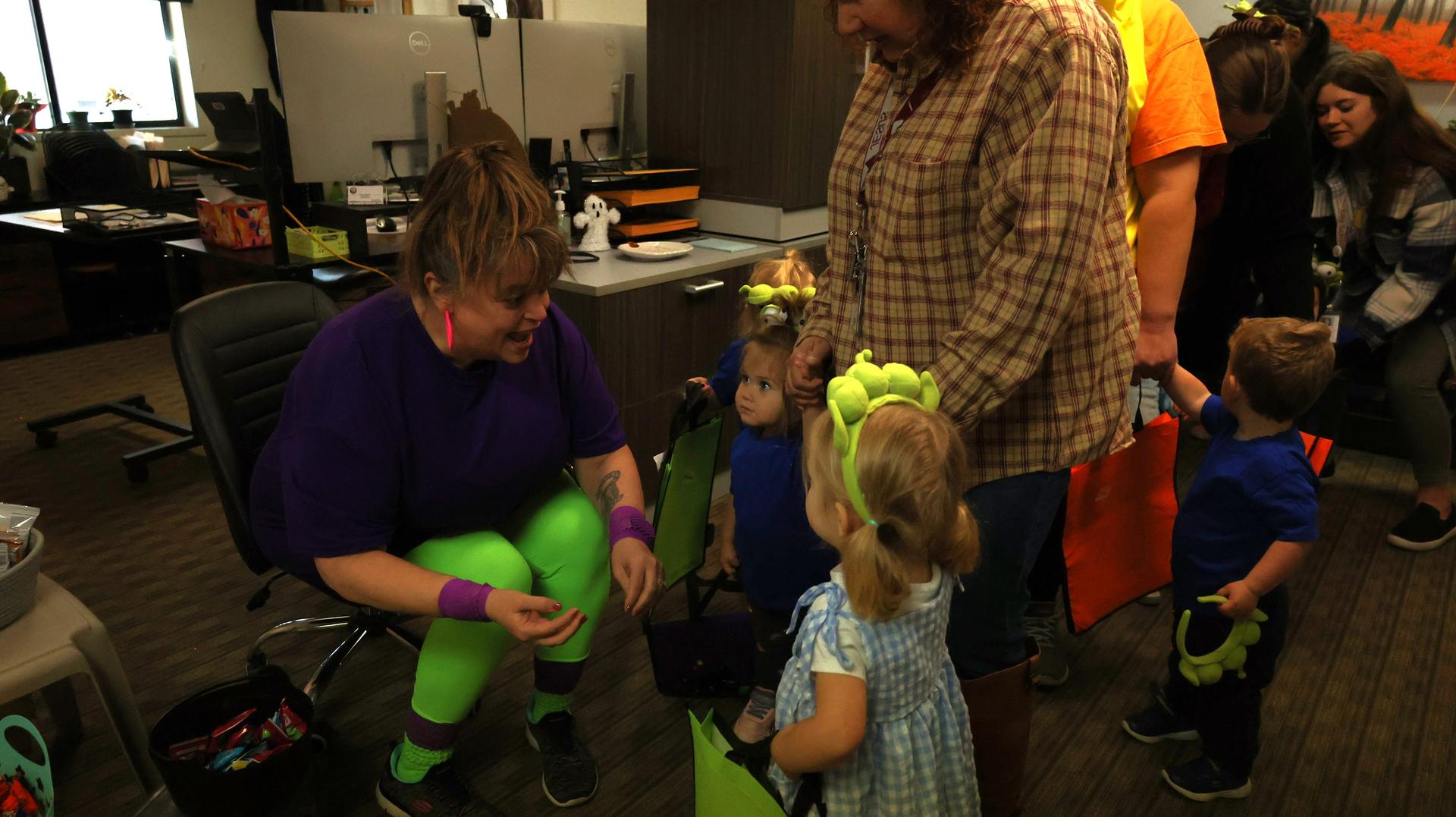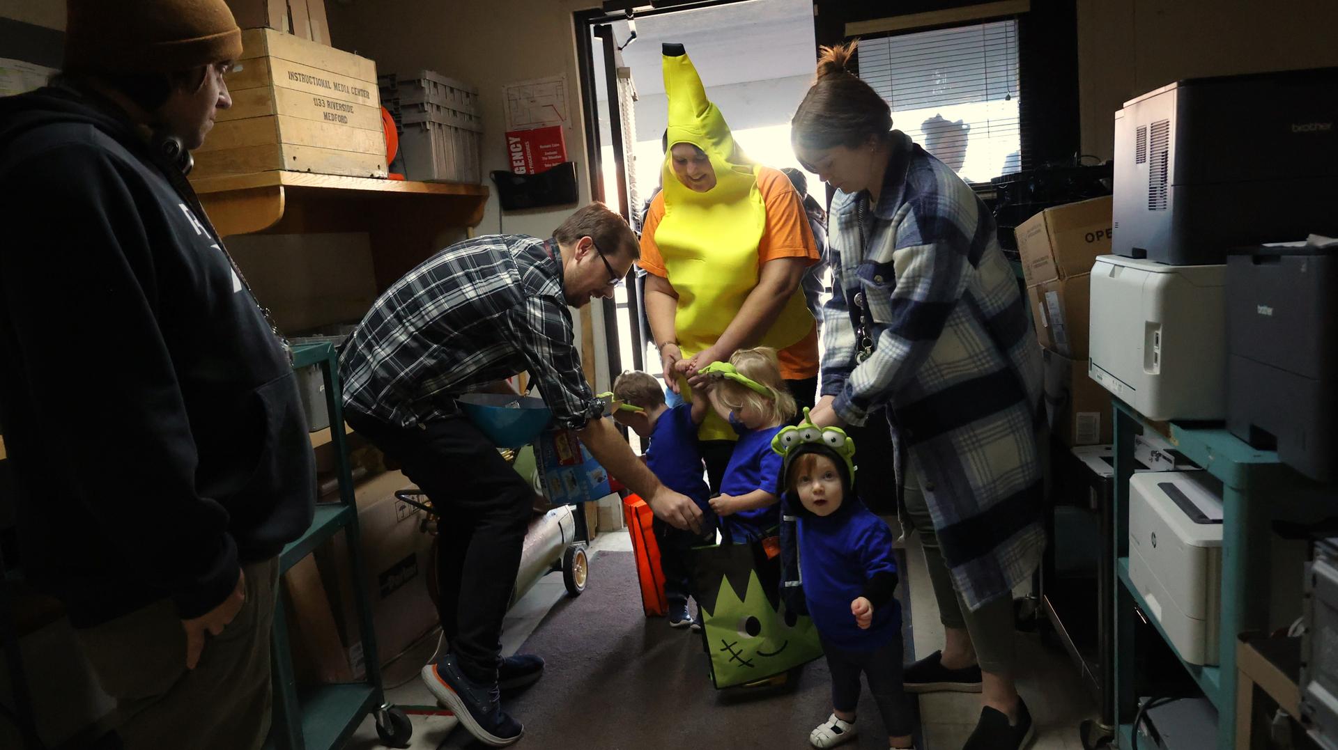 The little ones from Pel Babies, dressed in their Halloween costumes, brought plenty of smiles (and sugar rushes) as they made their way through each department at the KFCS district office collecting treats. Joining in the fun were students from the Vocational Independence Program (VIP), helping make the event extra special.