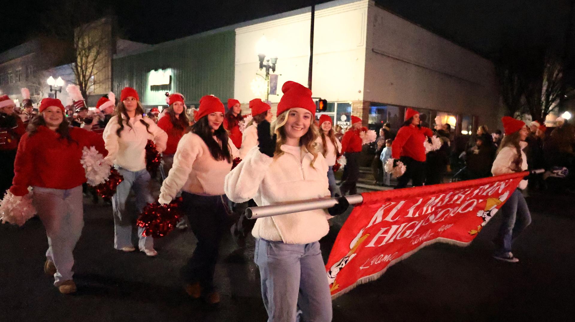 Eagle Ridge New Tech High School, Klamath Union High School's cheerleading team, marching band and the Vocational Independence Program, were all present at the parade in downtown Klamath Falls.