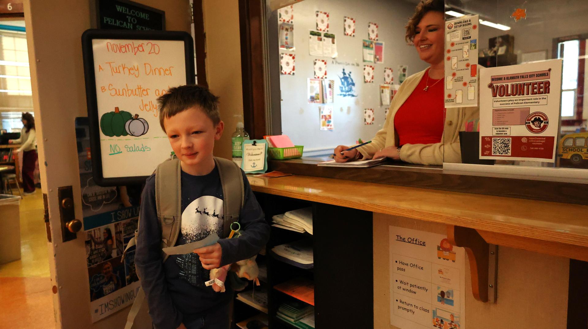 At Pelican Elementary School, each morning begins with something simple yet powerful, a connection. From the moment students step onto school, staff members across the building model what Klamath Falls City Schools’ Capturing Kids’ Hearts (CKH) initiative looks like in action. Pelican TOSA Shannon Kappas and clerical secretary Allison Phair greet students at the door and front office with smiles, waves, or fist bumps, offering a warm start to the day.