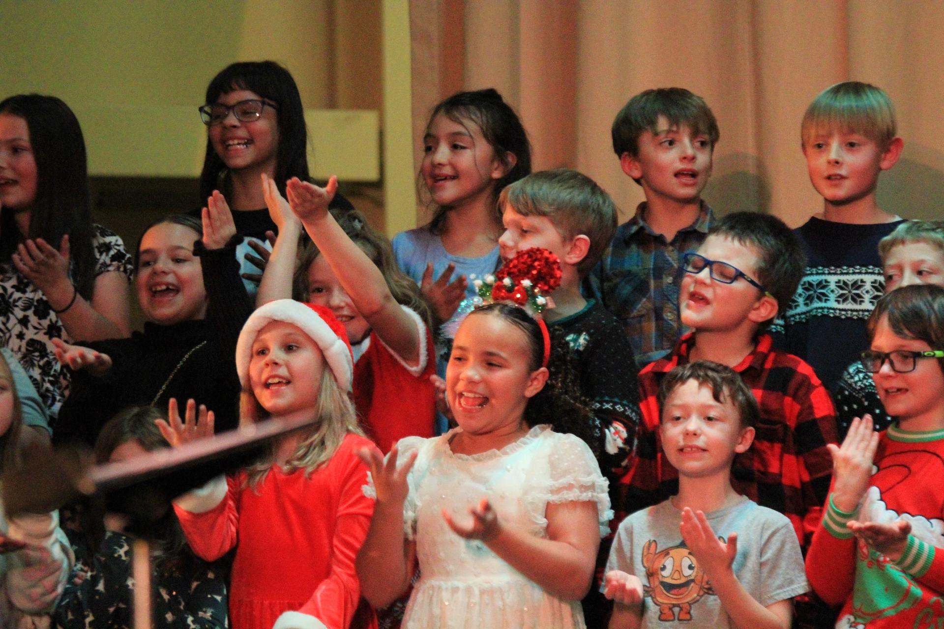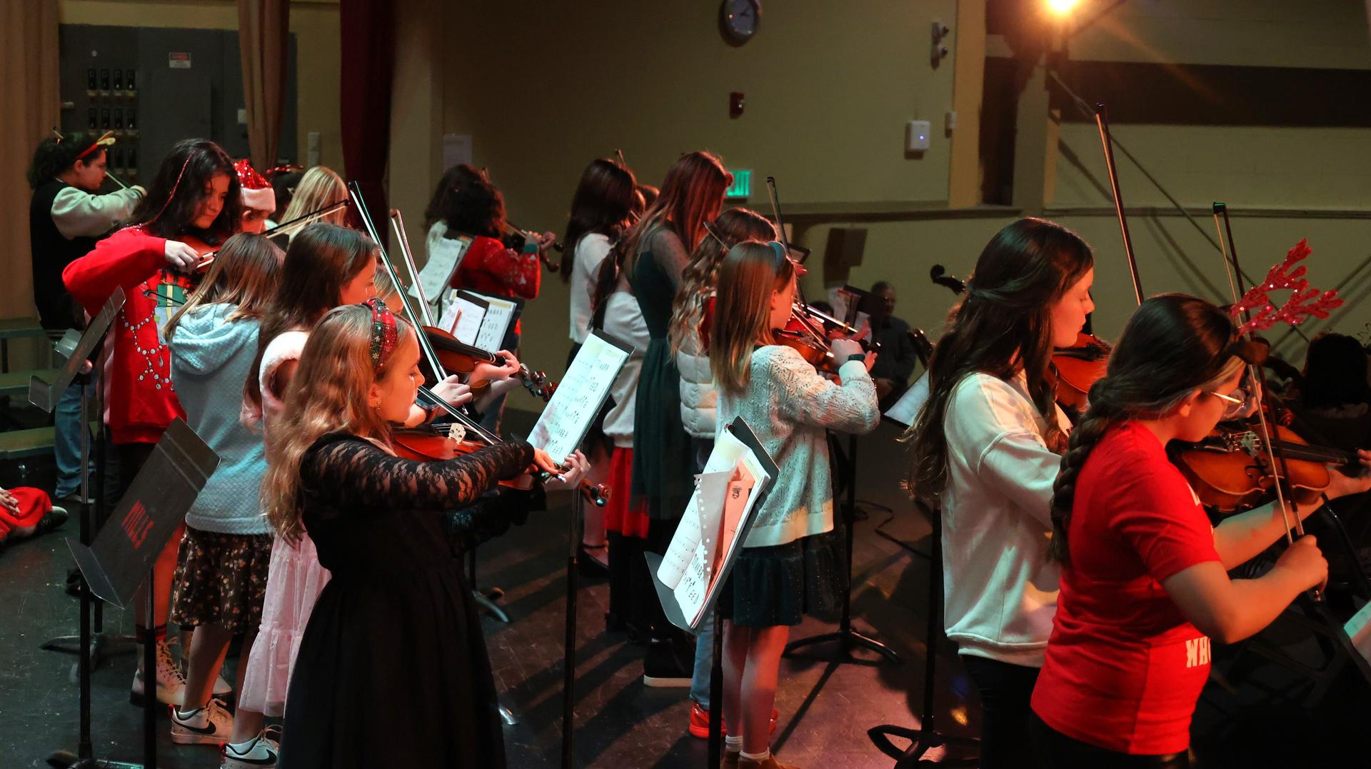 Music instructor Gretchen Harwood led the students with various holiday songs, with students playing some selections with their flute.