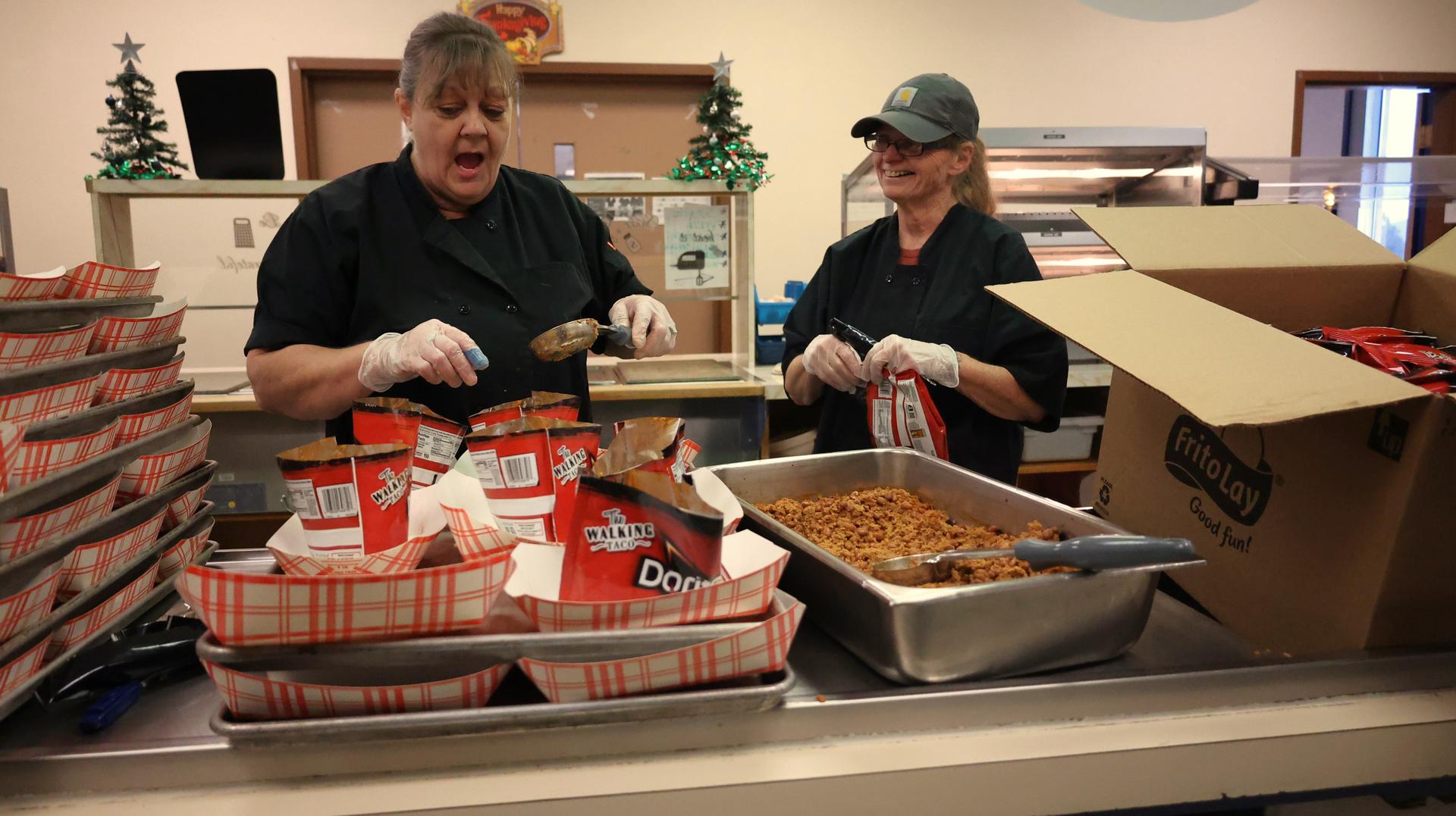 Ponderosa head cook Jene Gamble, now in her fifth year, has been earning steady praise from district nutrition service staff after recent training sessions and the rollout of a new grab-and-go which was featured Tuesday, the walking taco.